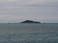 | 平良市街からは海を隔てて伊良部島が見える。伊良部島へはフェリーと高速船が頻繁に行き来し手軽に渡ることができる。コンビニエンスストアも一軒あった。 さらに奥には下地島がある。下地島には国内唯一のパイロット訓練場もあり、3000メートルの滑走路を持つ下地島空港がある(定期旅客便はない)。 |